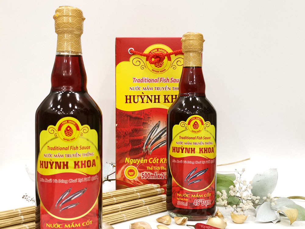 Nước Mắm Cốt Nhĩ Truyền Thống CDĐL Phú Quốc Huỳnh Khoa là một sản phẩm đặc sản của vùng biển đảo ngọc Phú Quốc xinh đẹp. Sản phẩm được sản xuất theo phương pháp truyền thống trong dây chuyền khép kín, ngoài ra sản phẩm còn đạt được chỉ dẫn địa lý do liên minh 28 nước Châu Âu công nhận. Đây là một sản phẩm được sản xuất và đóng chai tại Phú Quốc cùng hơn 100 năm sản xuất nước mắm truyền thống “không chất bảo quản, không chất điều vị” được sử dụng 100% chất lượng từ các tự nhiên và muối cho nên sản phẩm đưa ra luôn đạt các tiêu chí đề ra về chất lượng độ ngon nhờ vào phương pháp truyền thống được truyền bao đời.