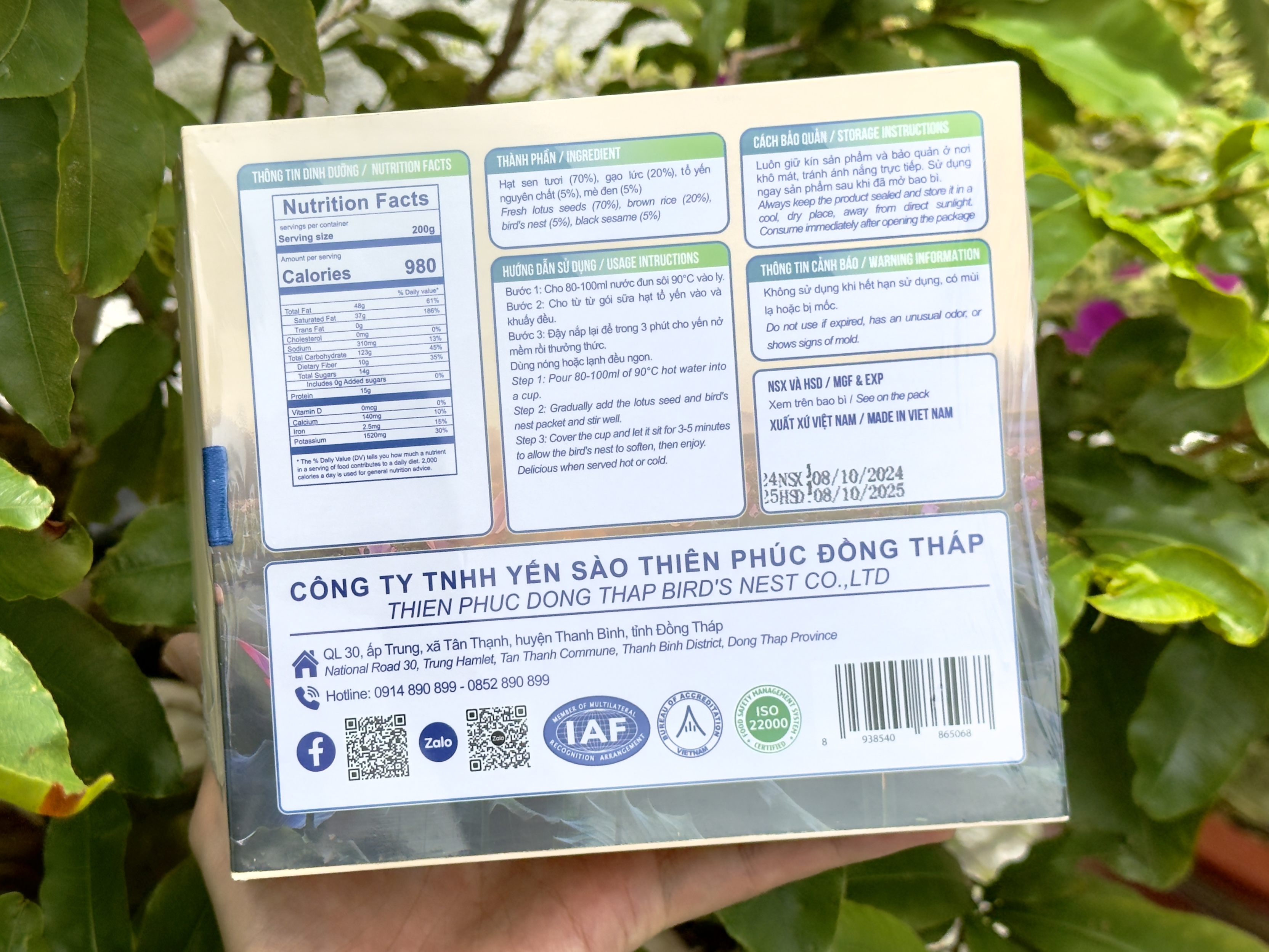 Điểm nổi bật của Sữa Hạt Tổ Yến Thiên Gia Phúc nằm ở nguyên liệu được lựa chọn kỹ lưỡng: hạt sen tươi ngon, giàu dưỡng chất, kết hợp cùng tổ yến thật – vốn nổi tiếng với công dụng bồi bổ cơ thể, nâng cao sức đề kháng và hỗ trợ tái tạo tế bào. Không chỉ đơn thuần là một loại thức uống dinh dưỡng, sản phẩm còn là sự hòa quyện giữa truyền thống và hiện đại, giữa giá trị dân gian lâu đời và nhu cầu chăm sóc sức khỏe ngày nay.